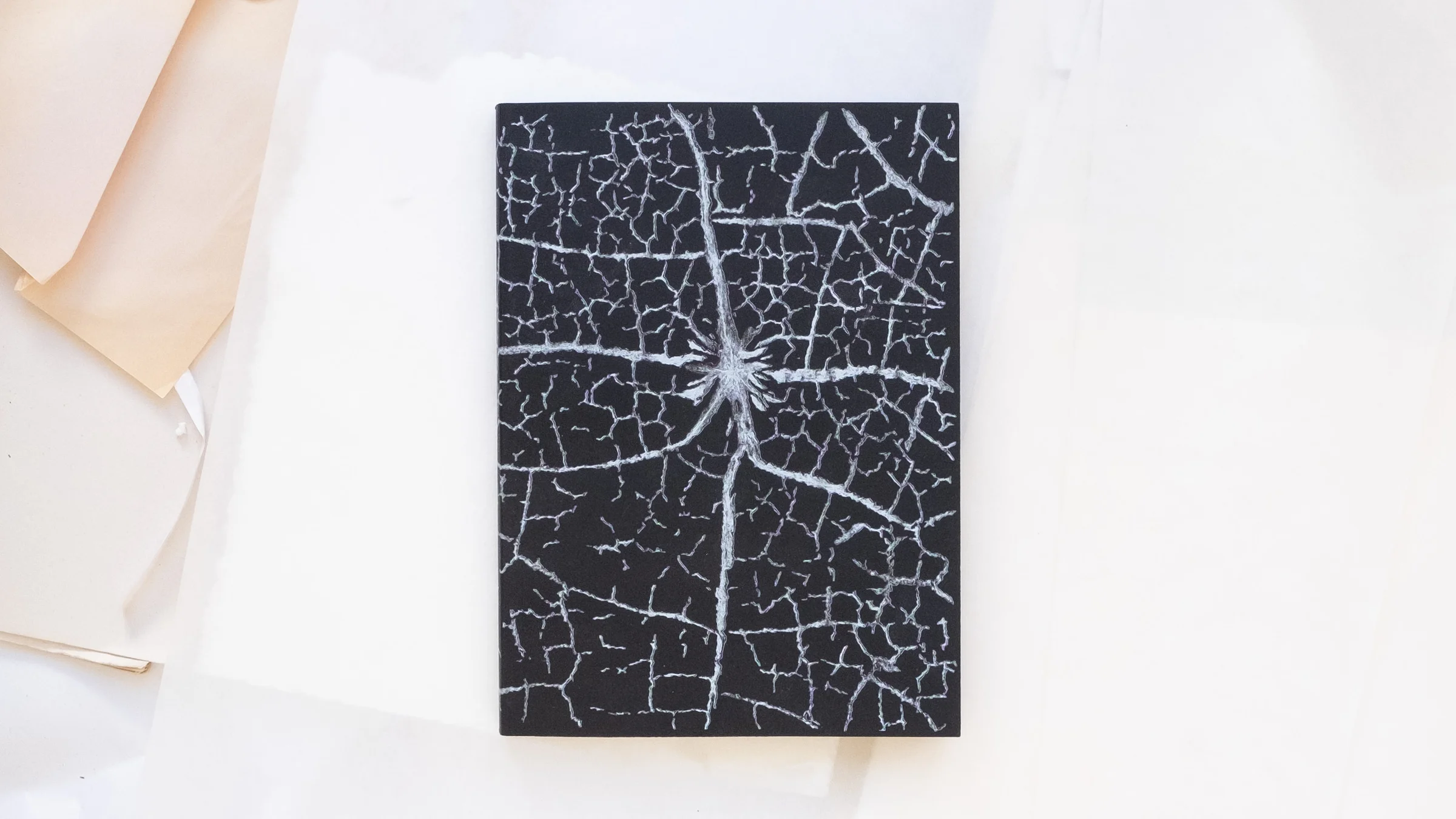 Close attention was paid to the qualities of ink on paper. A photograph traced meticulously in graphite encloses the volume where delicate layers of white, black, and gray rest on black paper. As images emerge from the dark, a hopeful thread builds momentum: patterns of potential and liberation.